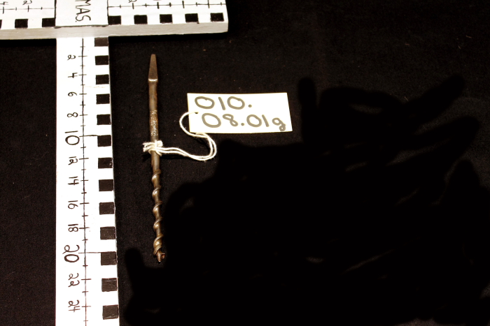 This is a drill bit for a hand drill [brace] from a carpenter’s tool box that was found in collection.