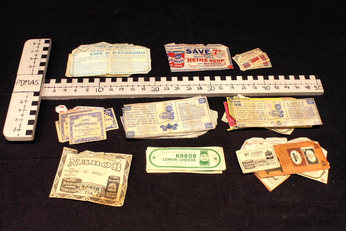 There are 32 Nabob Coupons, there are three Malkin, there are six Chase and Sanborn, there are two Blue Ribbon, There is one Catelli, there is one Bee Hive, There are two Heinz and there are four Maxwell House.