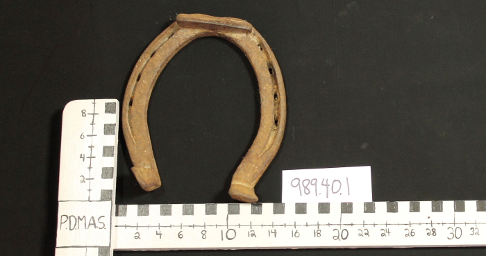 horseshoe with raised toe and eight nail holes.