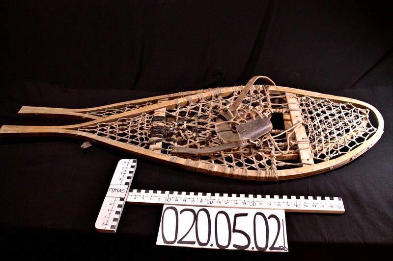 Two pairs of huron snow shoes donated by Clara Ronayne that belonged to her parents, Mollie and Clifford Ronayne. Both of them have foot straps unlike the other pair of snow shoes.