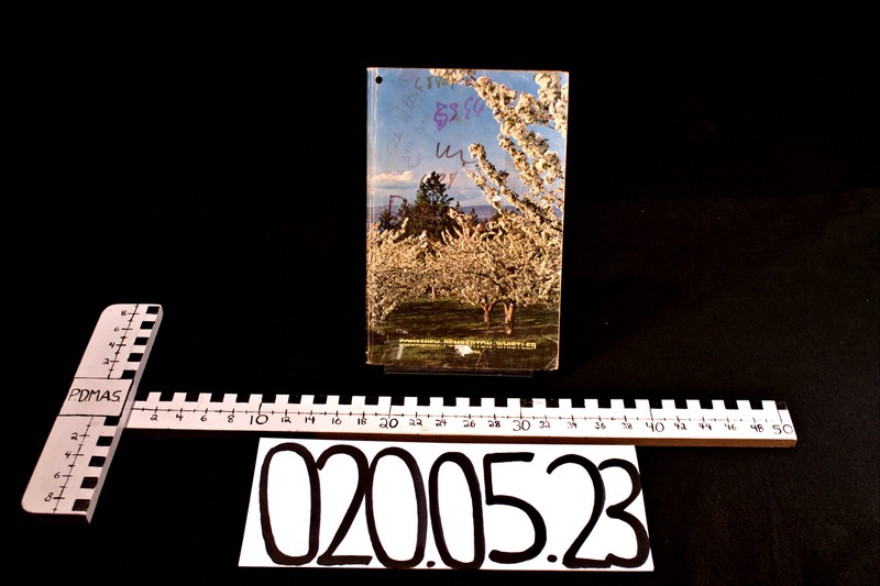 A softcover phone book with a forestry picture donated by Clara Ronayne. It covers from the areas of Squamish, Whistler, Pemberton, and other places nearby.