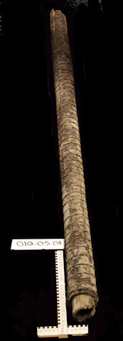 Wooden water pipe, has wire and original tar seal. Dug up next to Centennial Café excavation taking place in 2009. Steve’s grandson was working on the crew that dug it up.