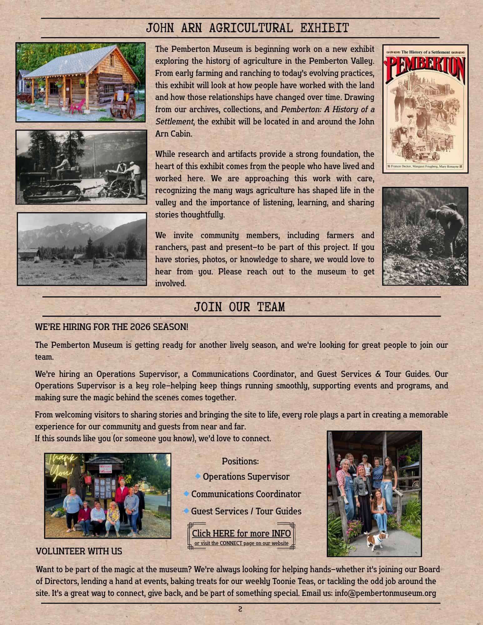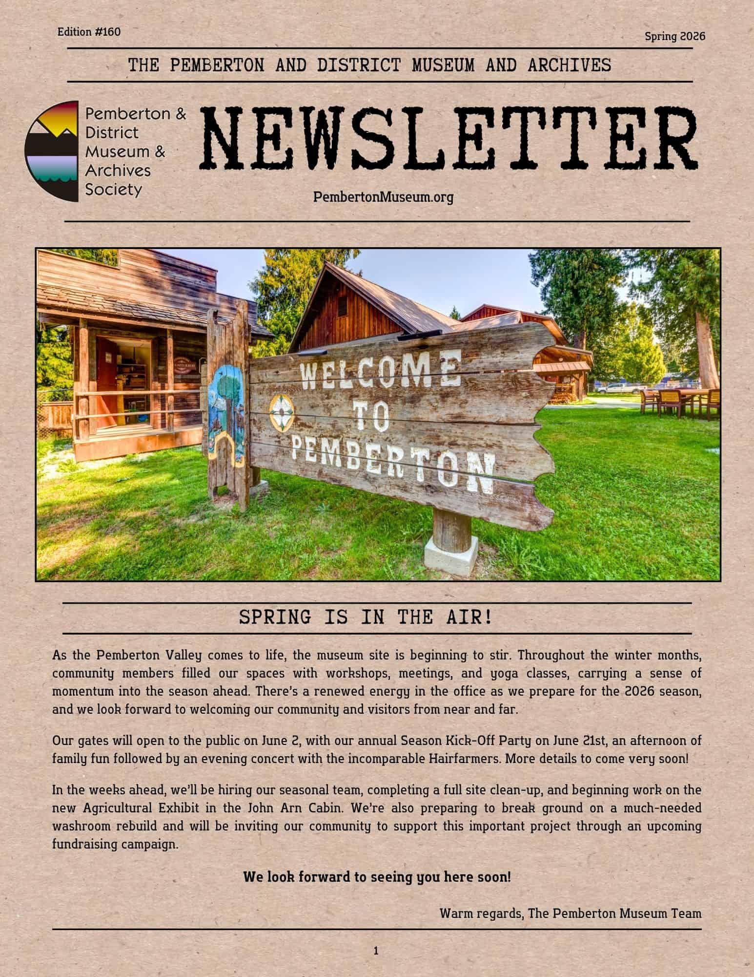 The Spring 2026 edition of the Pemberton Museum Newsletter is here!